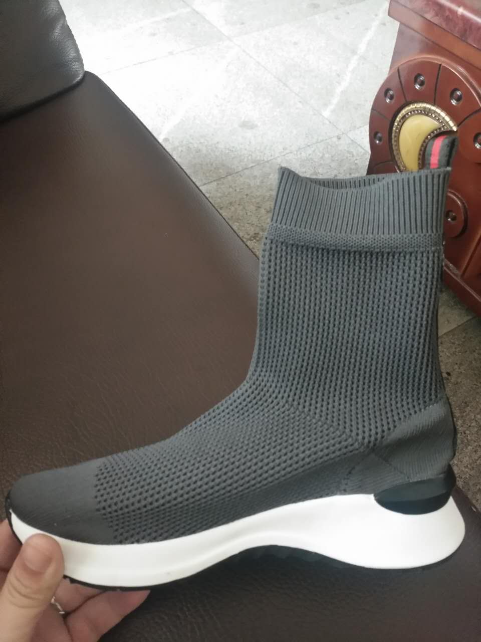 休闲时尚飞织高帮一脚蹬