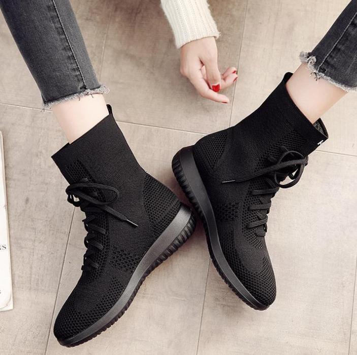 飞织休闲百搭中帮平底鞋